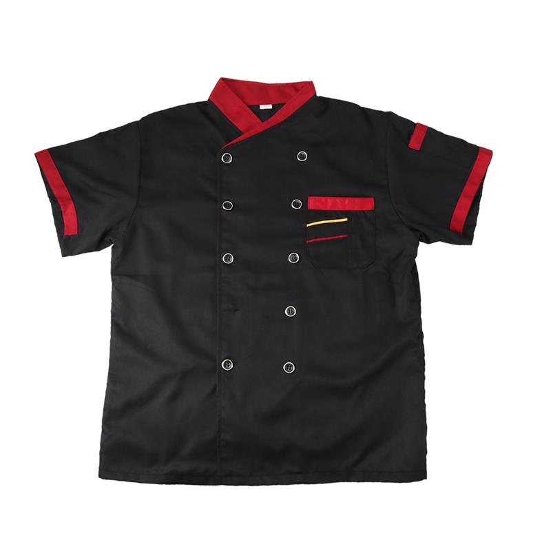 Our Fashionable Unisex Chef's Apparel is designed to provide a stylish and comfortable outfit for chefs working in restaurants, hotels, cafes, and other food service establishments. This short-sleeved chef uniform comes in classic black color that is easy to clean and maintain.