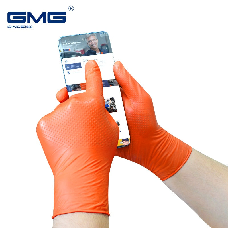 Heavy-Duty Gloves Mechanical Nitrile Gloves Orange Black Durable Diamond Pattern Oilproof Waterproof Synthetic Gloves Nitrile