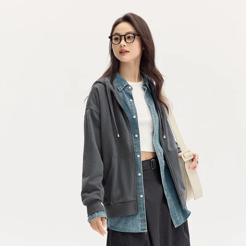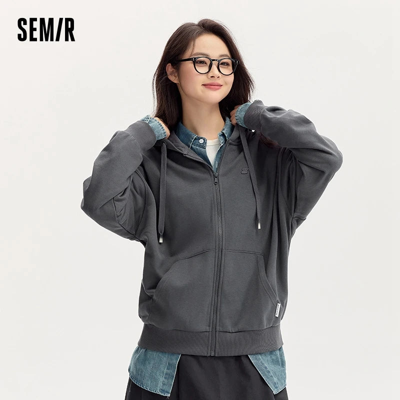 Semir Coat Women Loose Basic Hooded Jacket Versatile Temperament Women's Autumn Lazy Shoulder Leisure Style Clothes